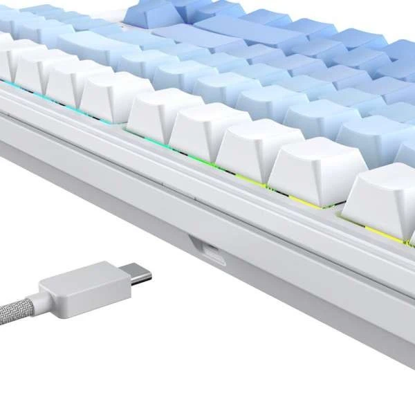 NA87 Pro — это клавиатура с RGB-подсветкой, которая может отображать 16,8 миллионов цветов. Клавиатура поддерживает горячую замену клавиш, что означает, что вы можете заменить любую клавишу без пайки. Кроме того, клавиатура оснащена защитой от ореолов, которая позволяет точно регистрировать каждое нажатие клавиши.