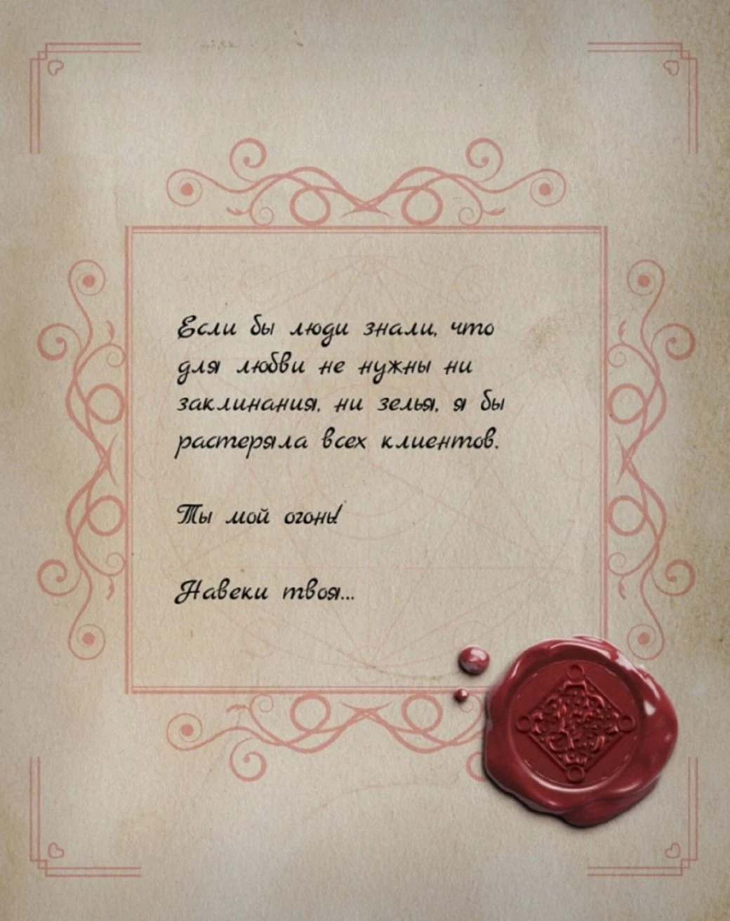 А в открытках по вселенной «Ведьмака» узнаются знакомые героини — как по характерным цветам, так и по характеру написанного. Например, в письме с фиолетовой печатью запросто узнаётся властная натура Йеннифэр.