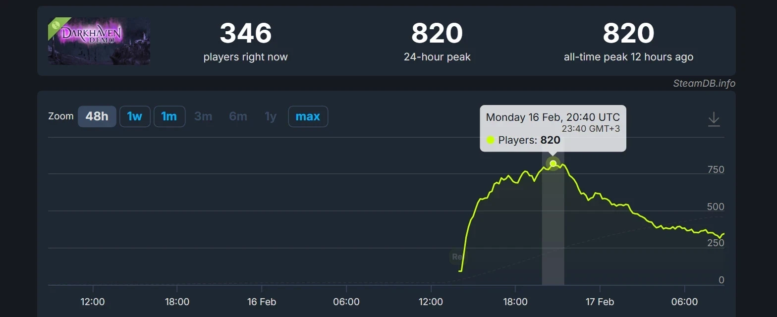 Демоверсия Darkhaven успела собрать 820 человек на пике онлайна в Steam. Возможно, кто-то из них заинтересуется в спонсировании игры на Kickstarter — кампания уже стартовала.